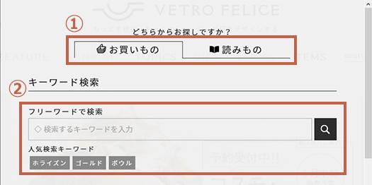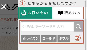 - お買い物(商品検索)又は読み物(記事検索)を選択してください。