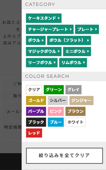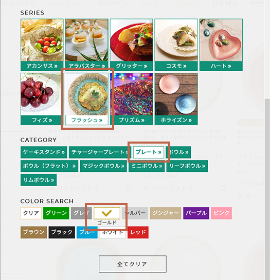 - キーワード検索を含むすべての絞り込みをクリアし、商品一覧へ移動します。